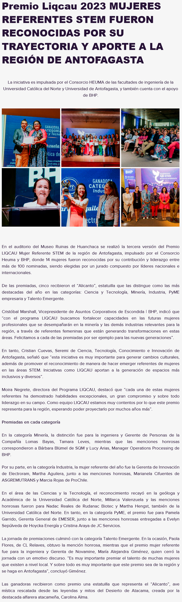 Premio Liqcau 2023 Mujeres referentes STEM fueron reconocidas por su trayectoria y aporte a la región de Antofagasta - (mvcomunicaciones.cl)