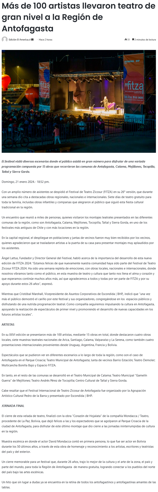 Más de 100 artistas llevaron teatro de gran nivel a la Región de Antofagasta - (El Mercurio de Antofagasta)