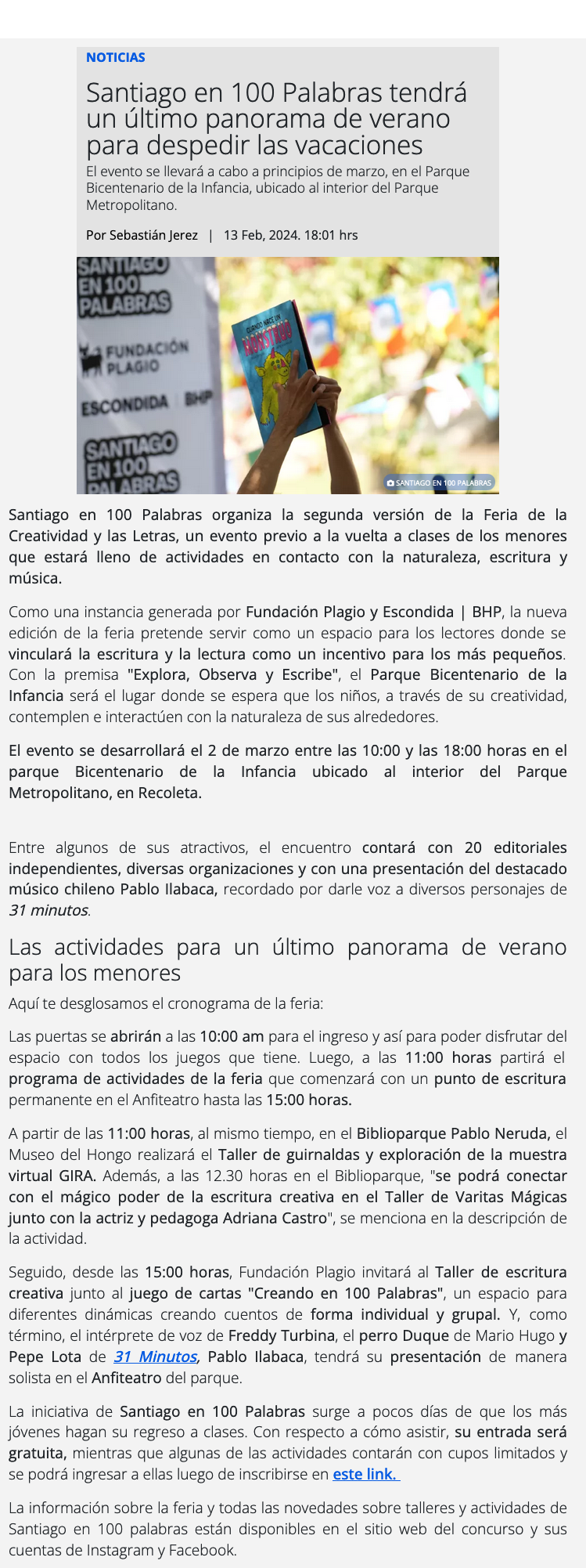 Santiago en 100 palabras trae el Ășltimo panorama del verano para las infancias - (La Cuarta)