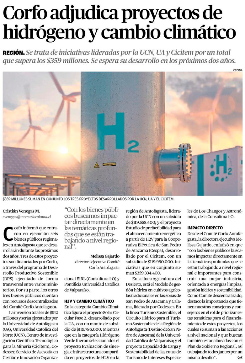 Comité Corfo Antofagasta adjudicó 6 proyectos regionales en iniciativas de hidrógeno verde, agricultura del desierto, turismo sostenible y cambio climático - (portalinnova.cl)