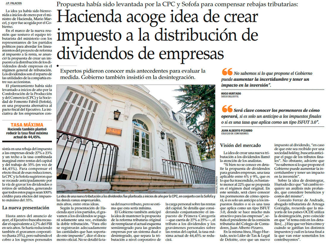 Hacienda oficializa propuesta de reducir la tasa de impuesto a las empresas a 25% e insistirĂ¡ con el sistema dual para grandes firmas - (Pulso)