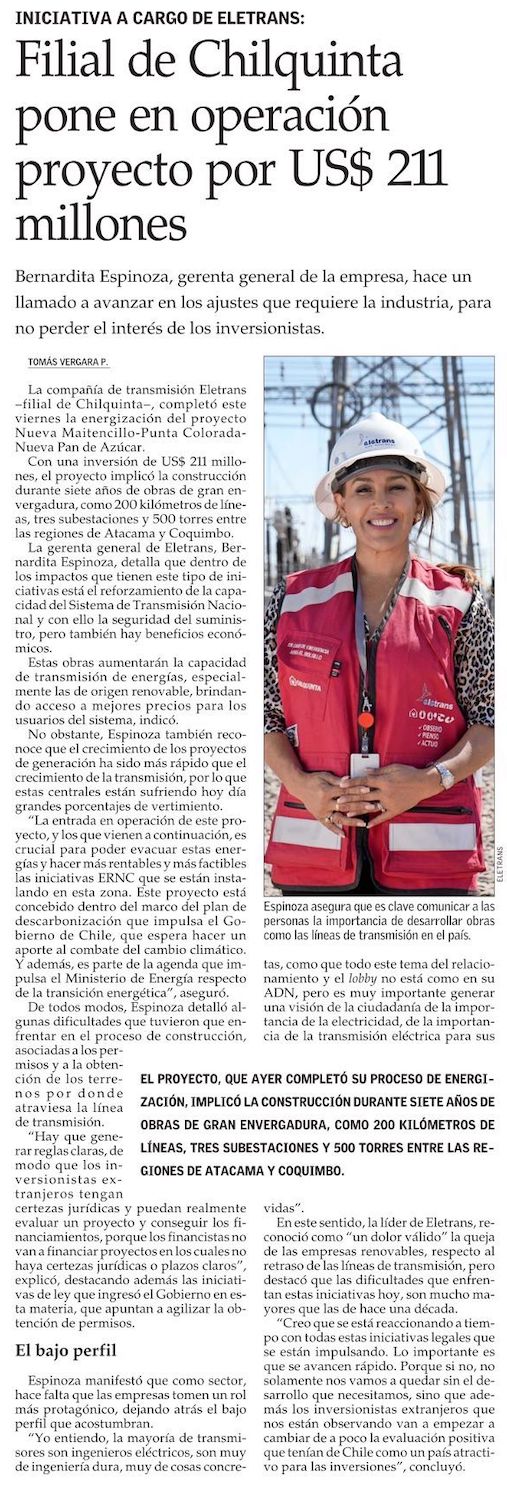 Nueva línea de transmisión eléctrica demandó US$ 221 millones de inversión - (La Región)