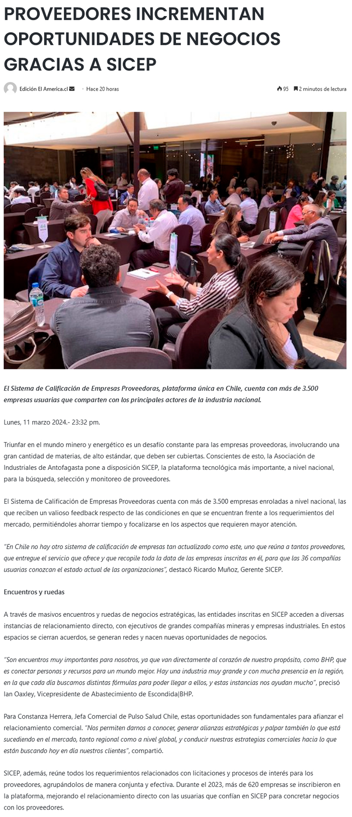 Proveedores incrementan oportunidades de negocios gracias a SICEP - (reporteminero)