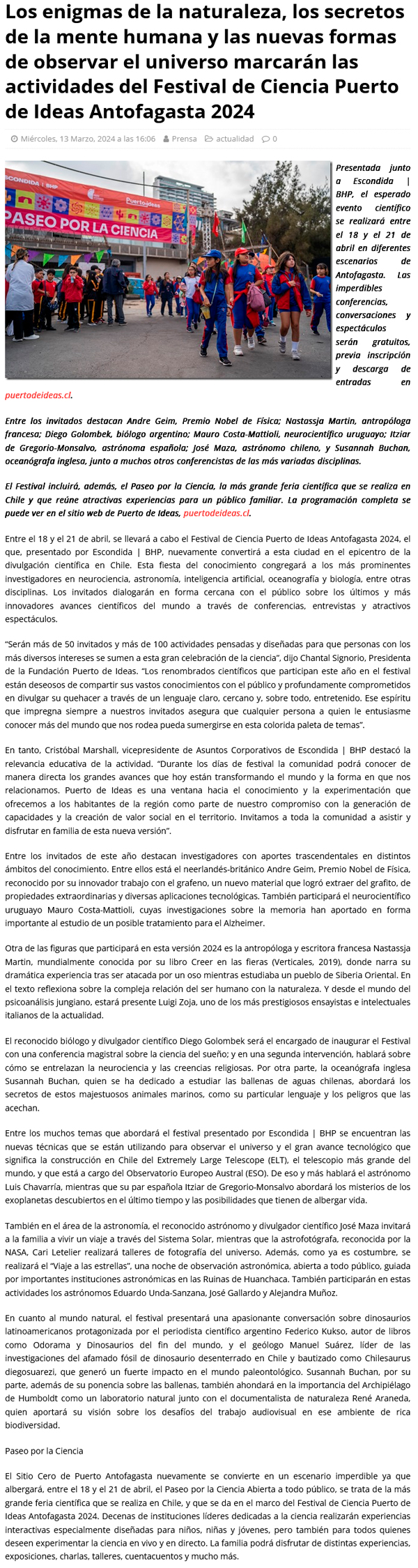 Los enigmas de la naturaleza, los secretos de la mente humana y las nuevas formas de observar el universo marcarán las actividades del Festival de Ciencia Puerto de Ideas Antofagasta 2024 - (termometro.cl)