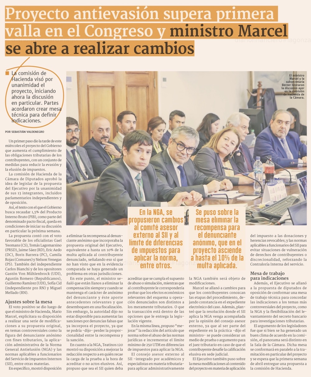 Hacienda modificará cuestionadas normas en proyecto antievasión - (El Mercurio de Santiago)