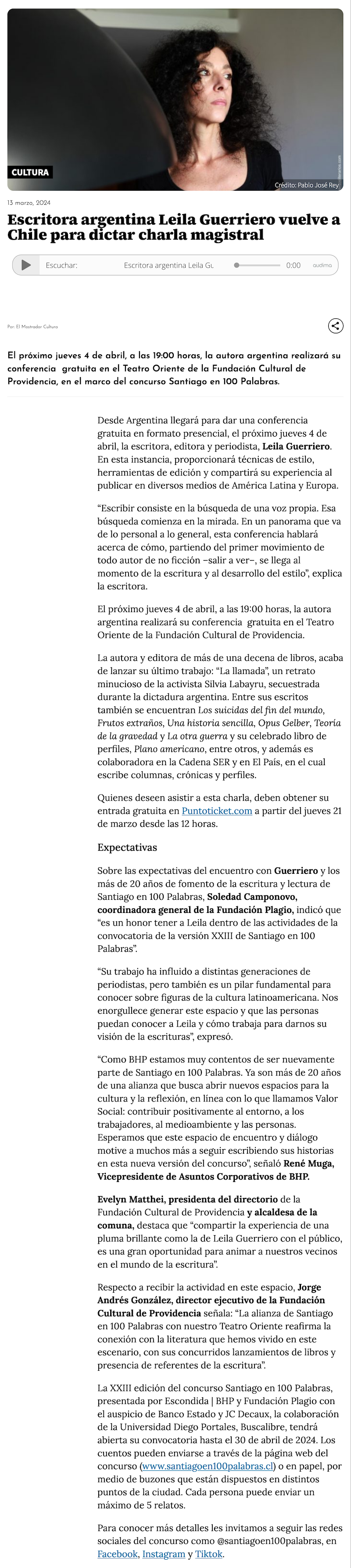 Leila Guerriero dará charla magistral gratuita en Chile: entregará técnicas de estilo y herramientas de edición - (radio.uchile online)