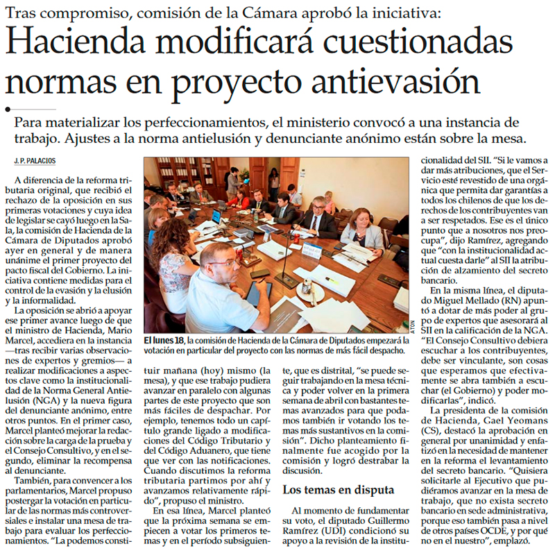Proyecto antievasivo supera primera valla en el Congreso y ministro Marcel se abre a realizar cambios - (Diario Financiero)