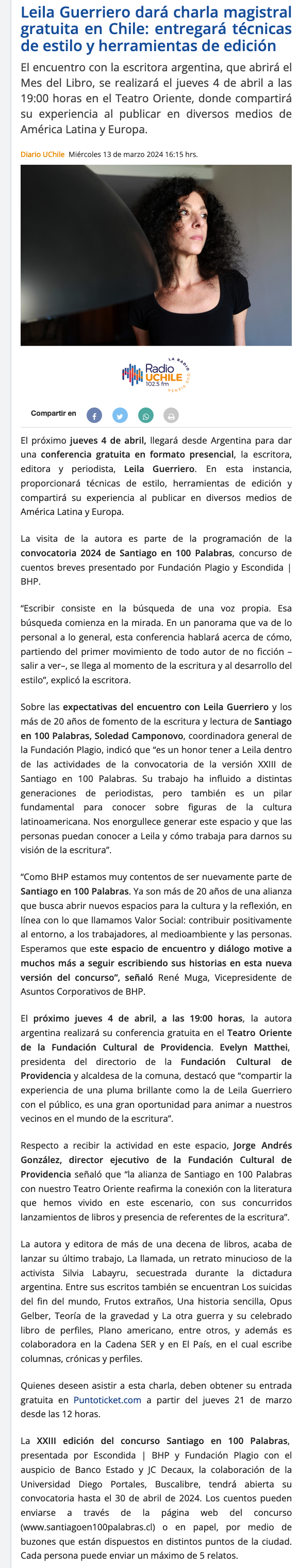 Escritora argentina Leila Guerriero vuelve a Chile para dictar charla magistral - (El Mostrador)
