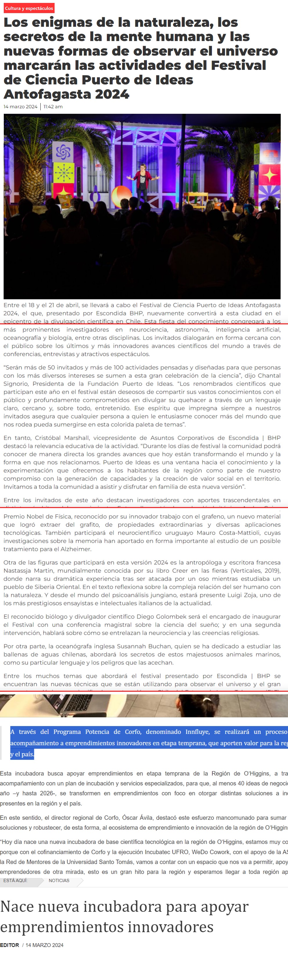 Antofagasta se prepara para el Festival de Ciencia Puerto de Ideas 2024: Más de 50 expositores confirmados y un centenar de actividades - (soyantofagasta)