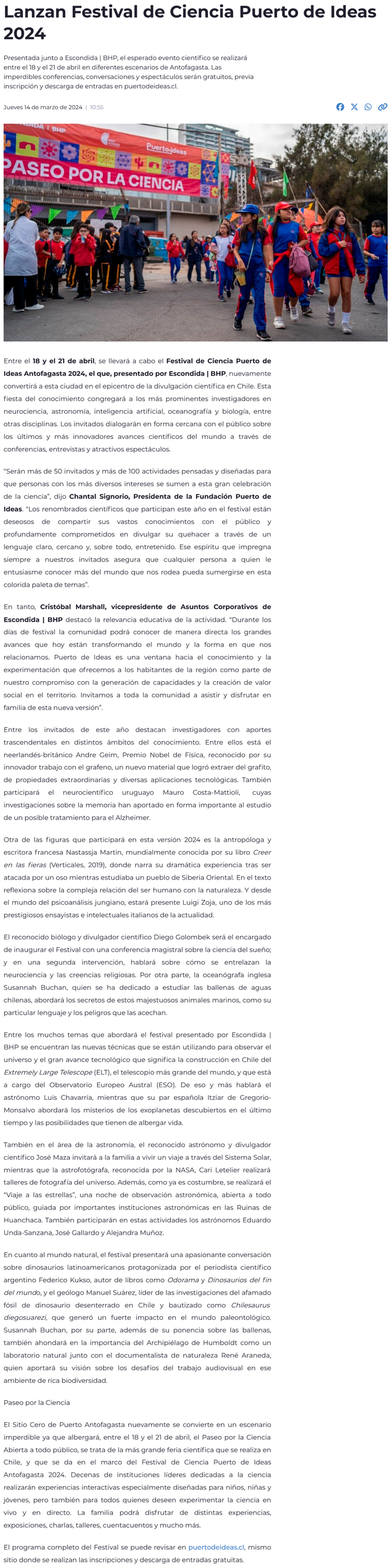 Antofagasta se prepara para el Festival de Ciencia Puerto de Ideas 2024: Más de 50 expositores confirmados y un centenar de actividades - (soyantofagasta)