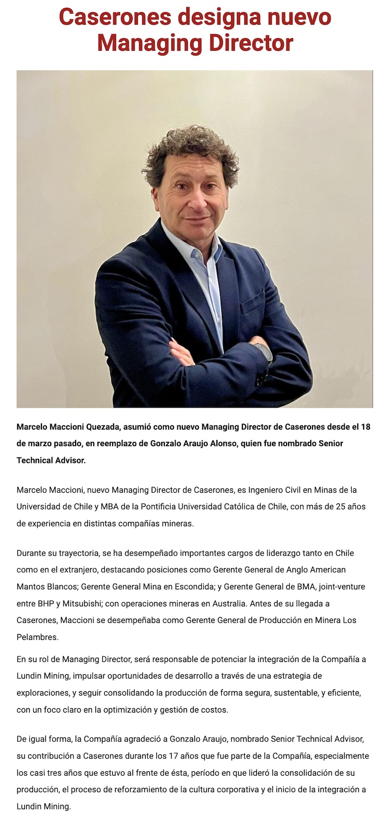 Caserones designa nuevo Managing Director - (Maray Online)