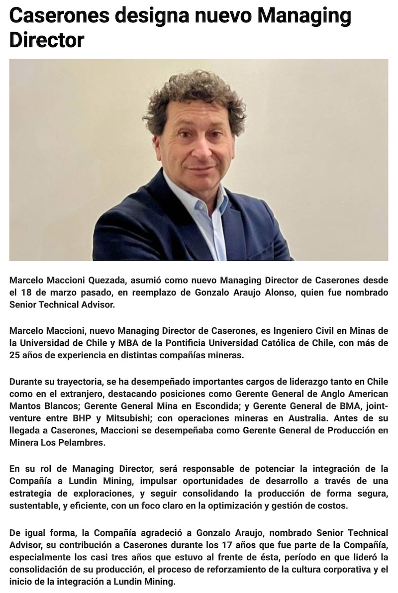 Caserones designa nuevo Managing Director - (tierramarillano.cl)