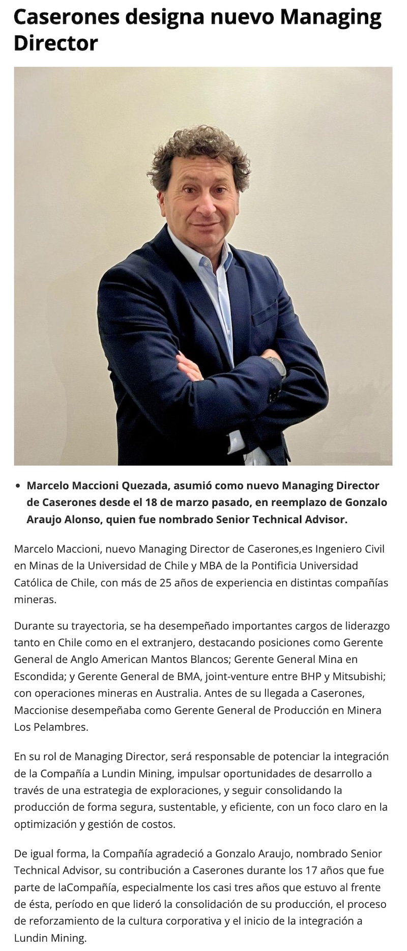 Caserones designa nuevo Managing Director - (tierramarillano.cl)
