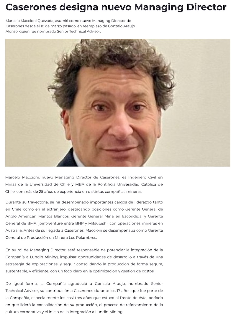 Caserones designa nuevo Managing Director - (tierramarillano.cl)