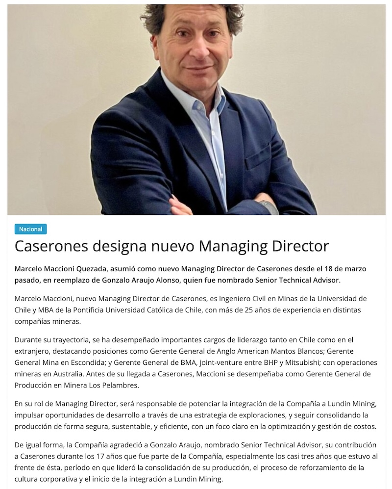 Caserones designa nuevo Managing Director - (tierramarillano.cl)