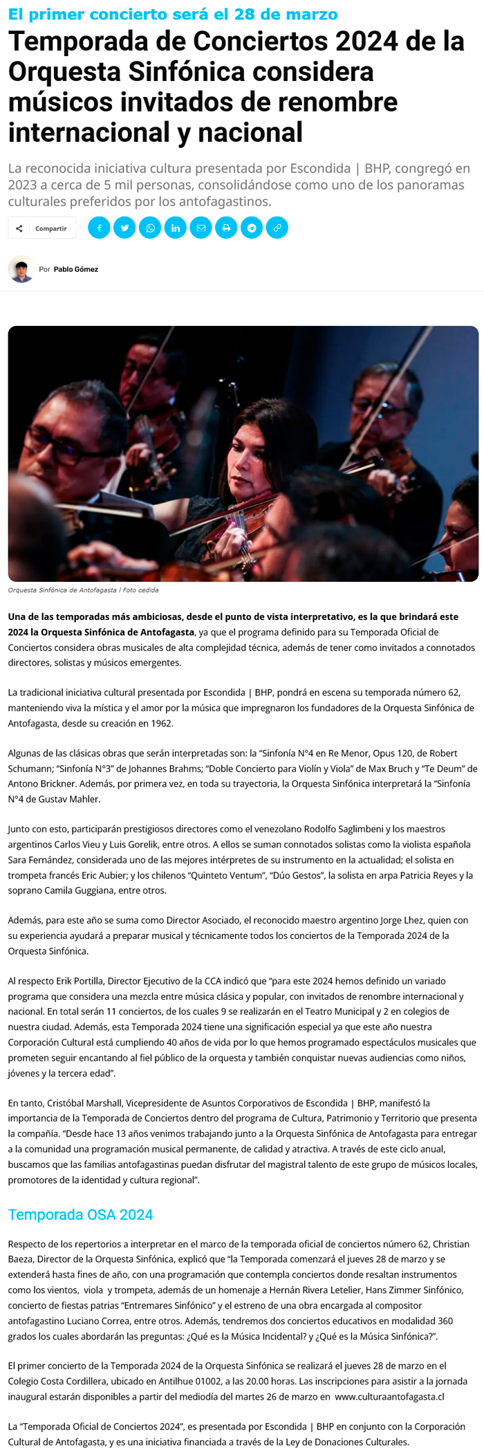Temporada de Conciertos 2024 de la Orquesta Sinfónica Antofagasta - (elamerica)