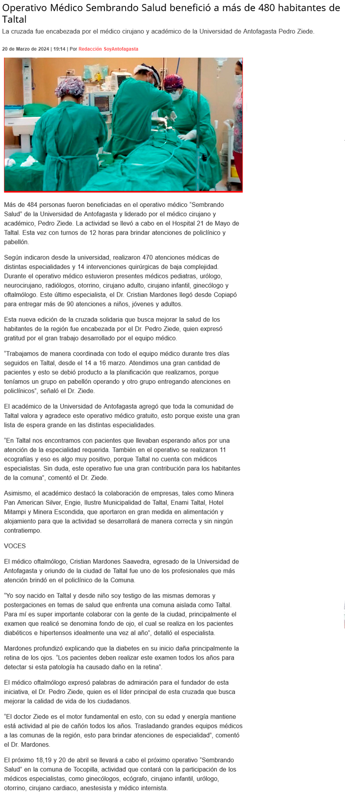 Más de 484 personas beneficiadas con Operativo Médico Sembrando Salud UA en Taltal - (termometro.cl)