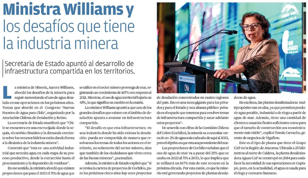 Autoridades y líderes de empresas mineras abordaron los avances y desafíos de la desalación y el reúso de fuentes hídricas en la industria - (termometro.cl)