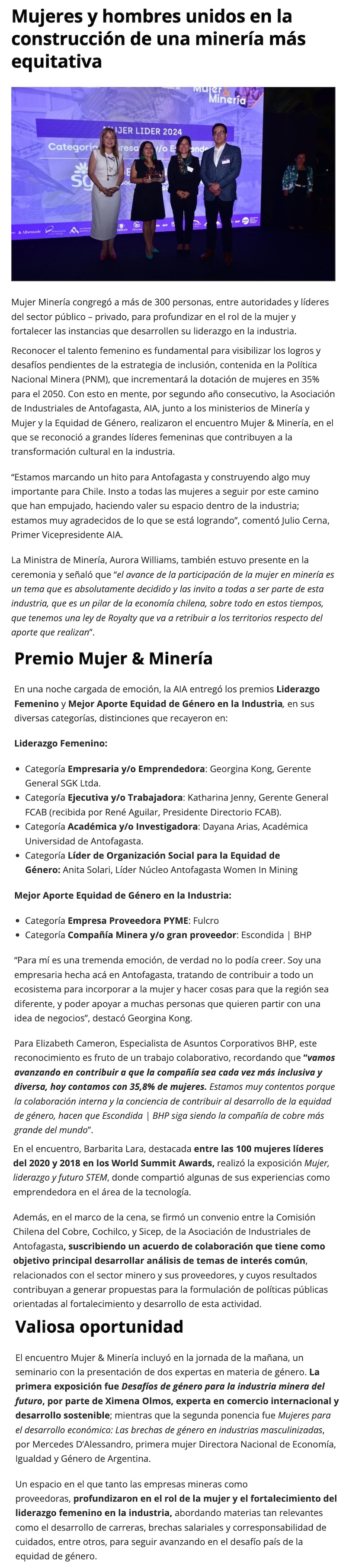 Mujeres y hombres unidos en la construcción de una minería más equitativa - (norteyenegia.cl)