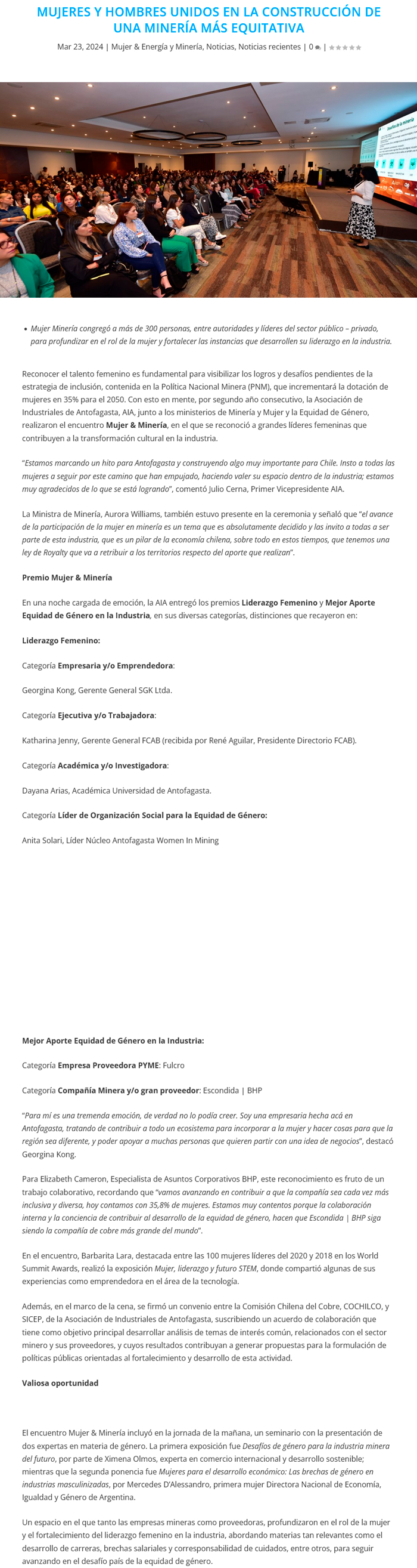 Premian a líderes femeninas en Antofagasta durante encuentro Mujer y Minería de AIA - (timeline)