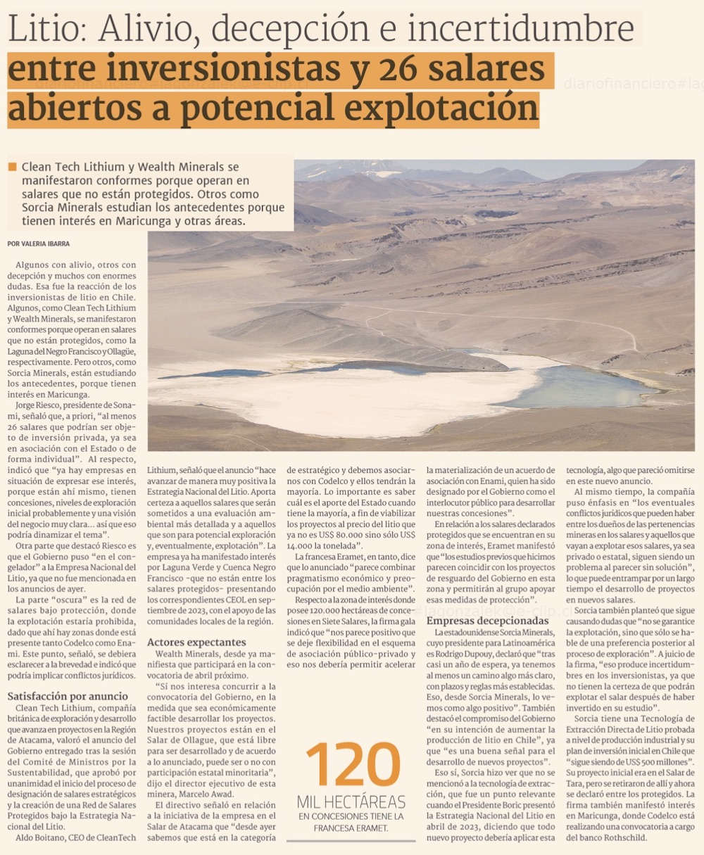 Valoran espacio abierto a privados en la estrategia del litio, pero surgen dudas por su implementación - (El Mercurio de Santiago)
