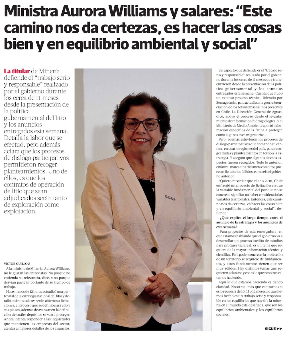 Aurora Williams, Ministra de Minería: “Es factible pensar que podamos tener el liderazgo” mundial en litio - (Diario Financiero)