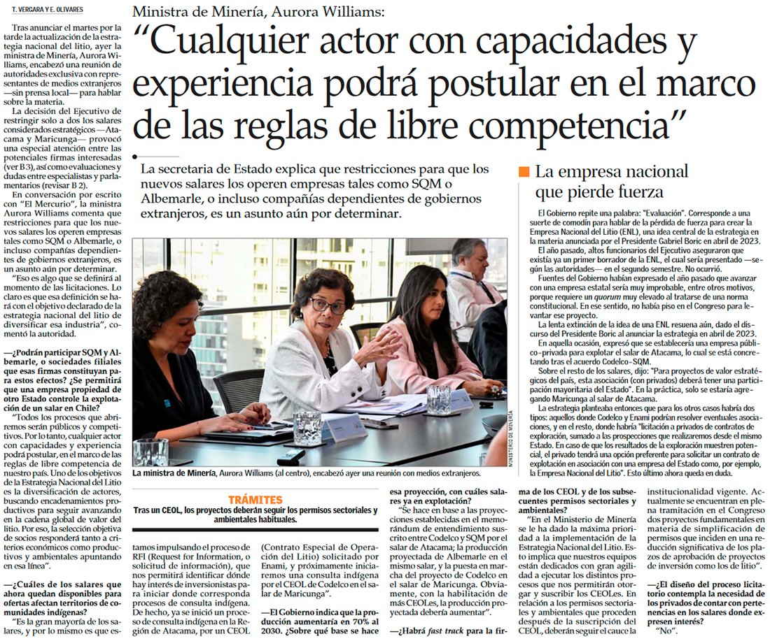 Aurora Williams, Ministra de Minería: “Es factible pensar que podamos tener el liderazgo” mundial en litio - (Diario Financiero)