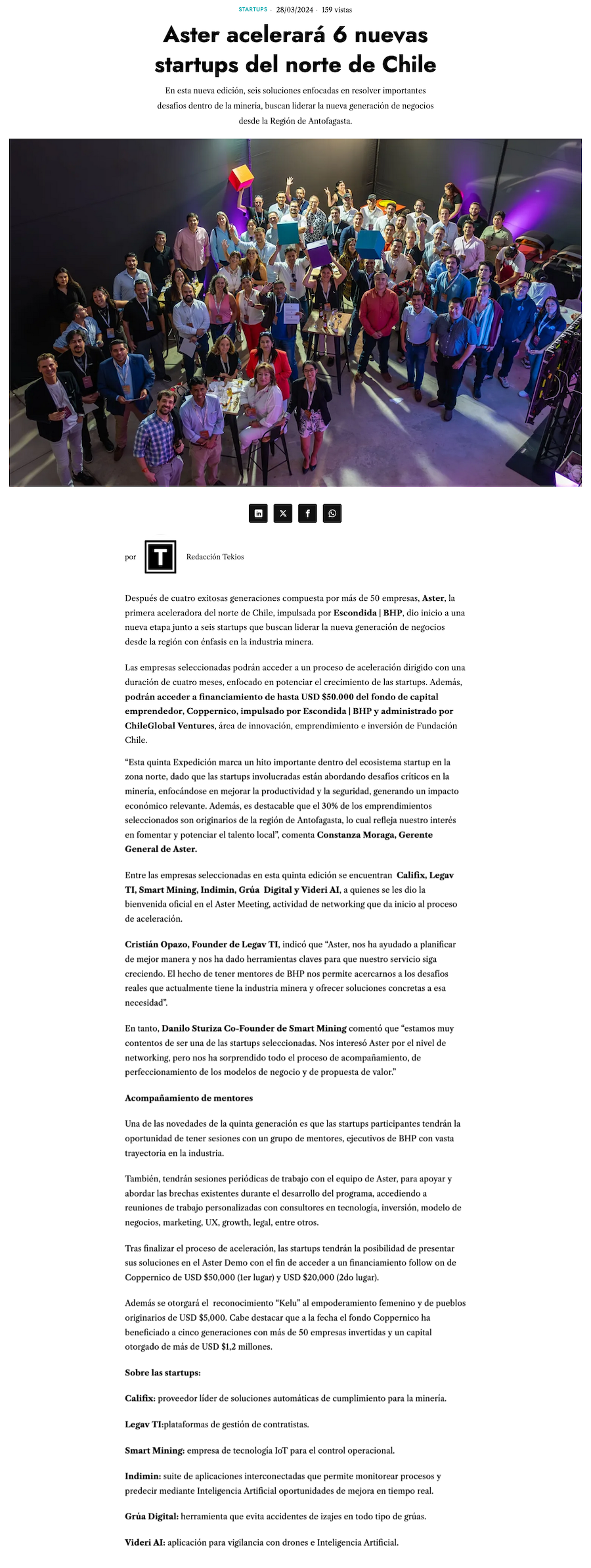 Aster acelerará 6 nuevas startups que buscan liderar la nueva generación de negocios desde la Región de Antofagasta - (portalinnova.cl)