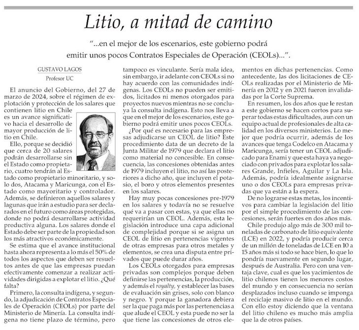 El litio: despejando dudas - (El Mercurio de Santiago)