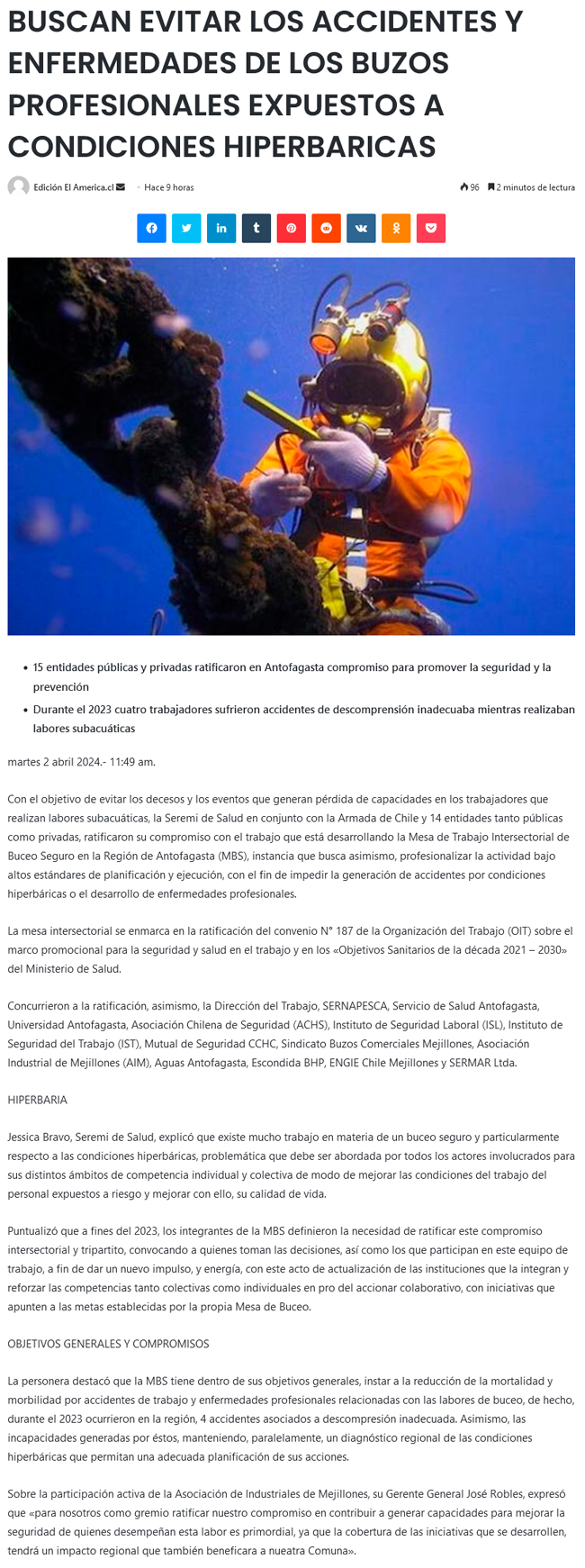 Ratifican convenio en Antofagasta que busca evitar accidentes y enfermedades de buzos profesionales - (timeline)