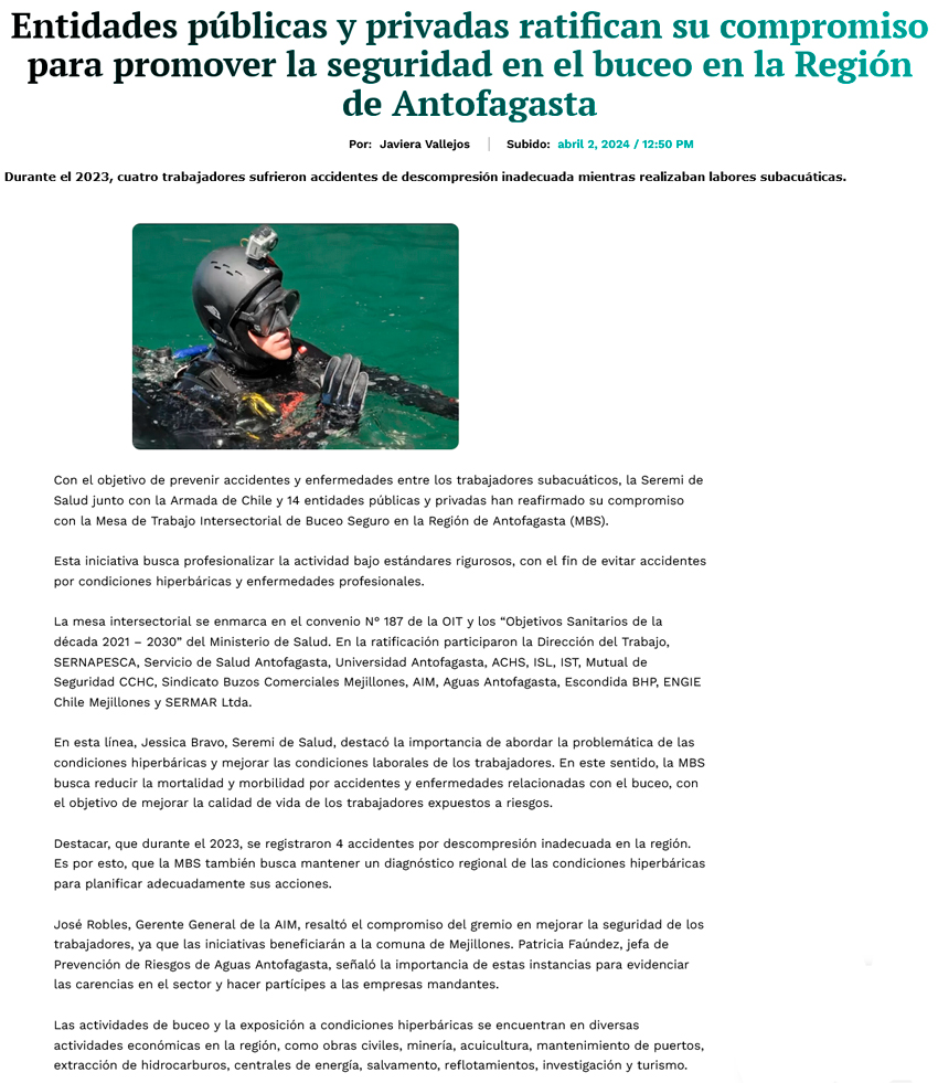 Ratifican convenio en Antofagasta que busca evitar accidentes y enfermedades de buzos profesionales - (timeline)