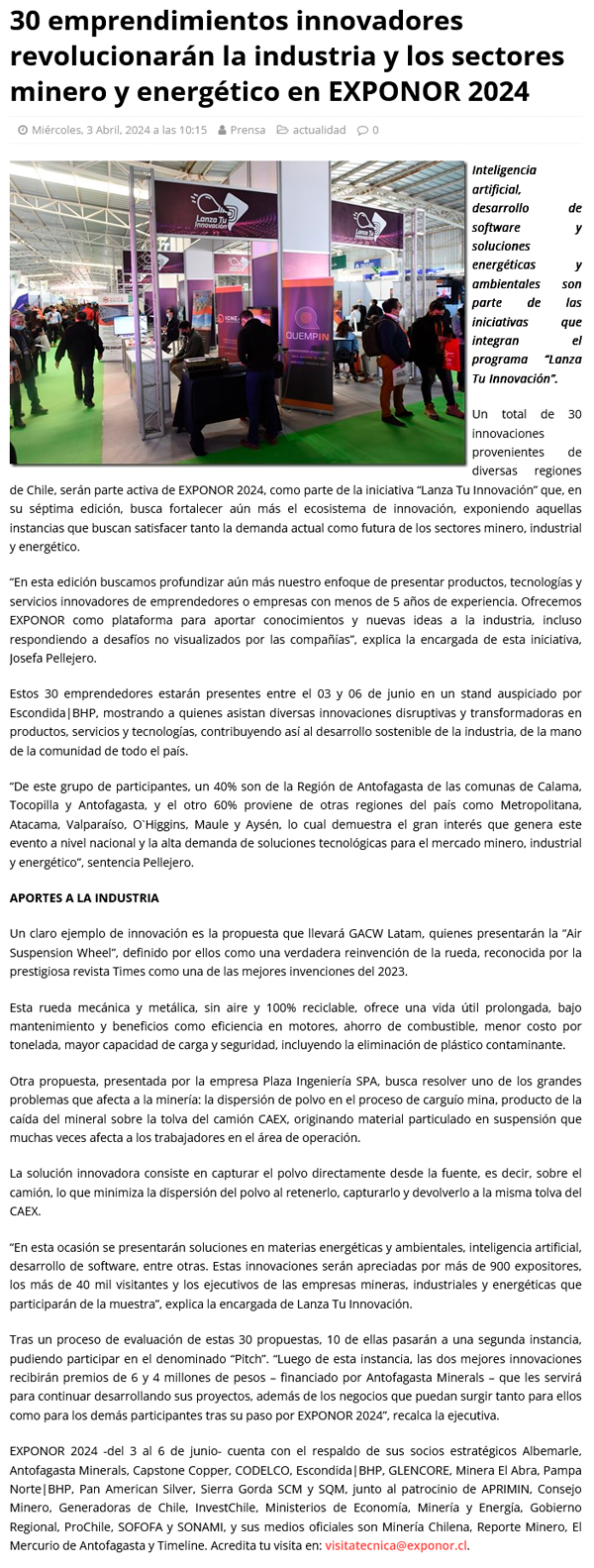 30 emprendimientos innovadores revolucionarán la industria y los sectores minero y energético en EXPONOR 2024 - (enfoquenoticias.cl)