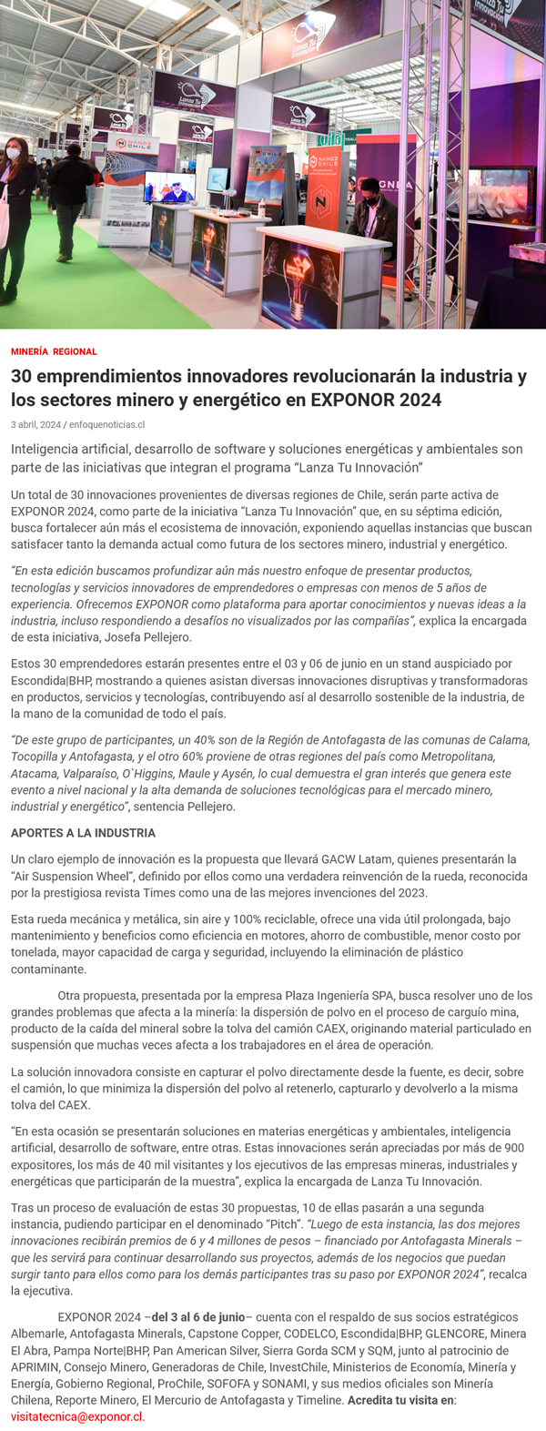 30 emprendimientos innovadores revolucionarán la industria y los sectores minero y energético en EXPONOR 2024 - (regionesnoticias.cl)