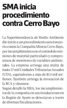 Minera Cerro Bayo se expone a millonaria multa por diversos incumplimientos ambientales - (eldivisadero)