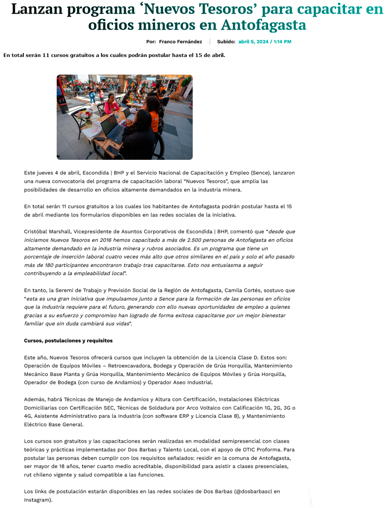 Escondida | BHP y Sence abren nueva convocatoria para cursos gratuitos de alta demanda en la industria minera - (timeline)