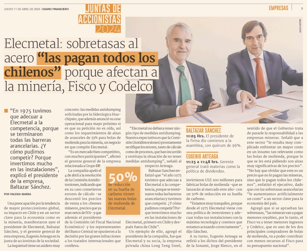 Presidente de Elecmetal: "Se construyó artificialmente un margen de dumping" - (Pulso)