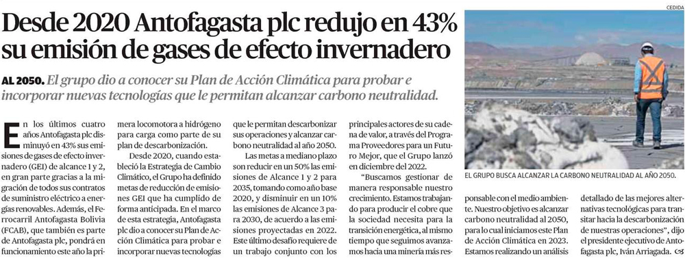Antofagasta plc redujo en un 43% sus emisiones de gases con efecto invernadero - (diarioantofagasta)