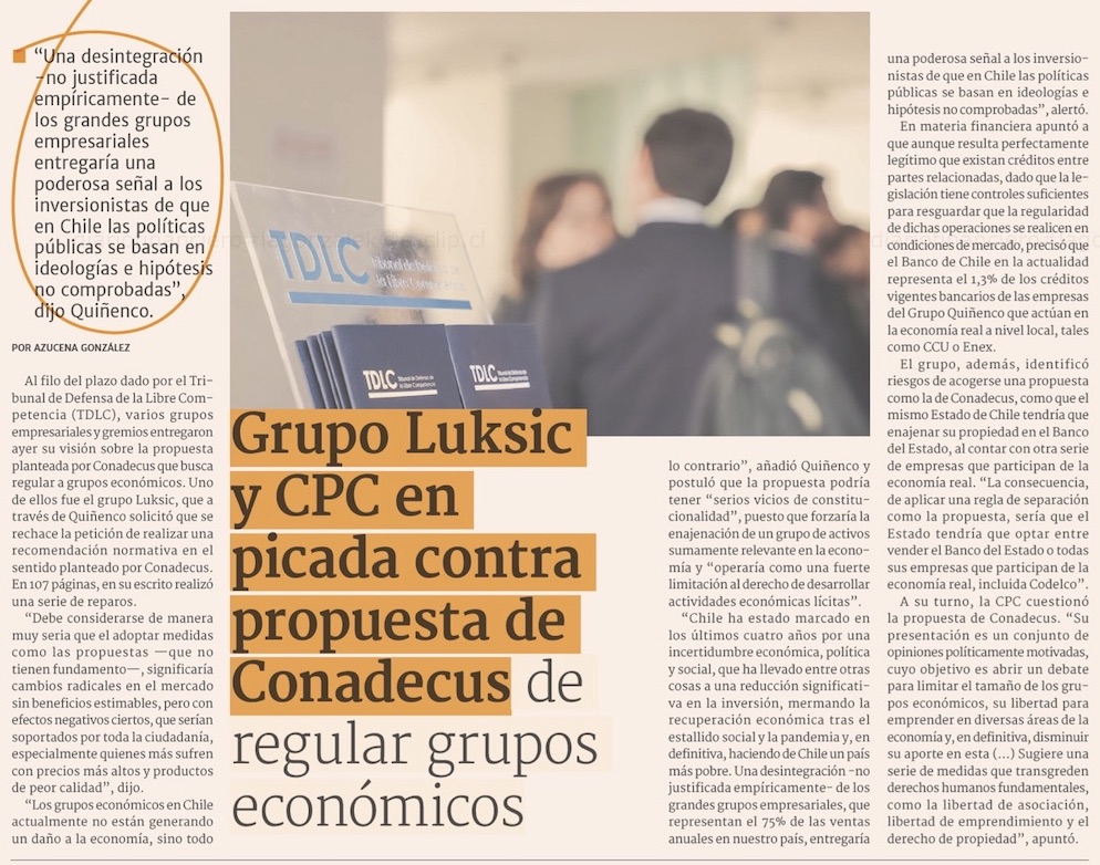 Grupos Luksic y Matte alertan por regulación a grandes conglomerados empresariales - (Pulso)