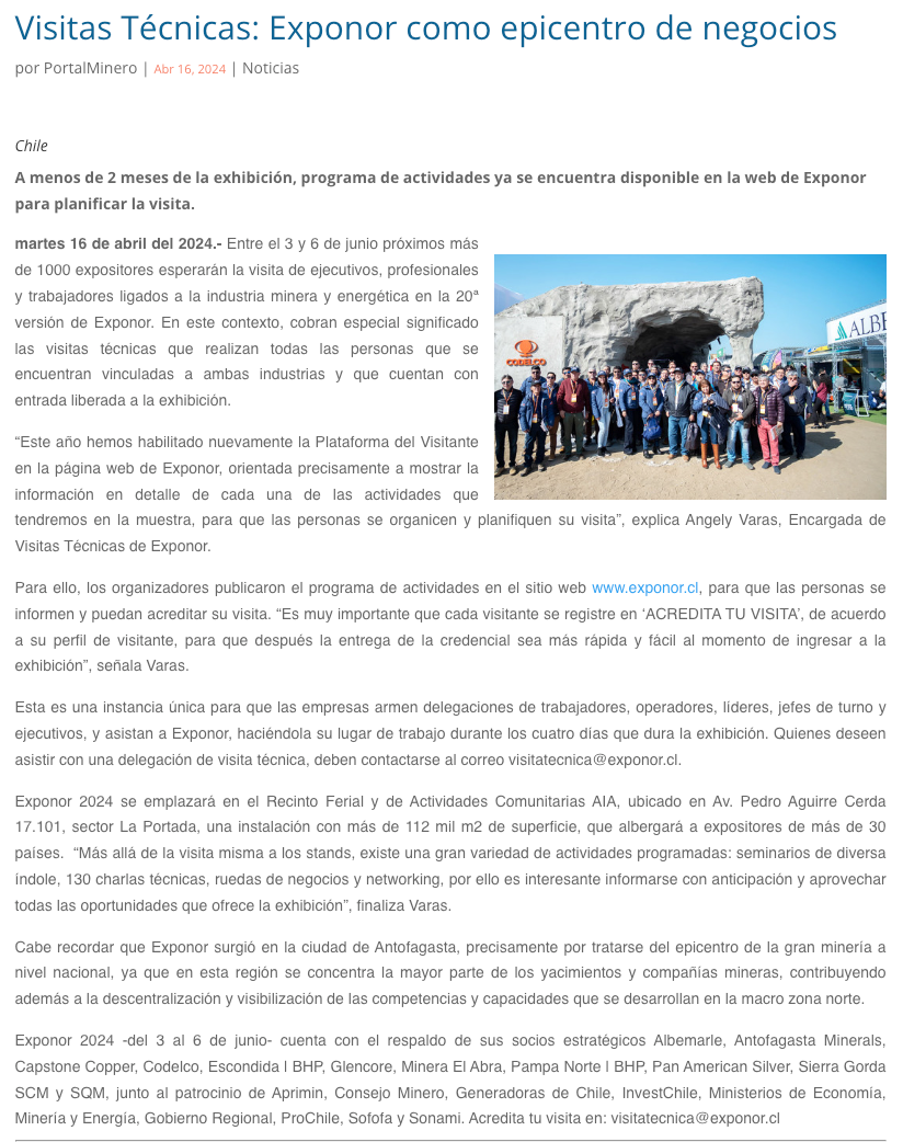 Visitas técnicas: EXPONOR como epicentro de negocios - (norteyenegia.cl)