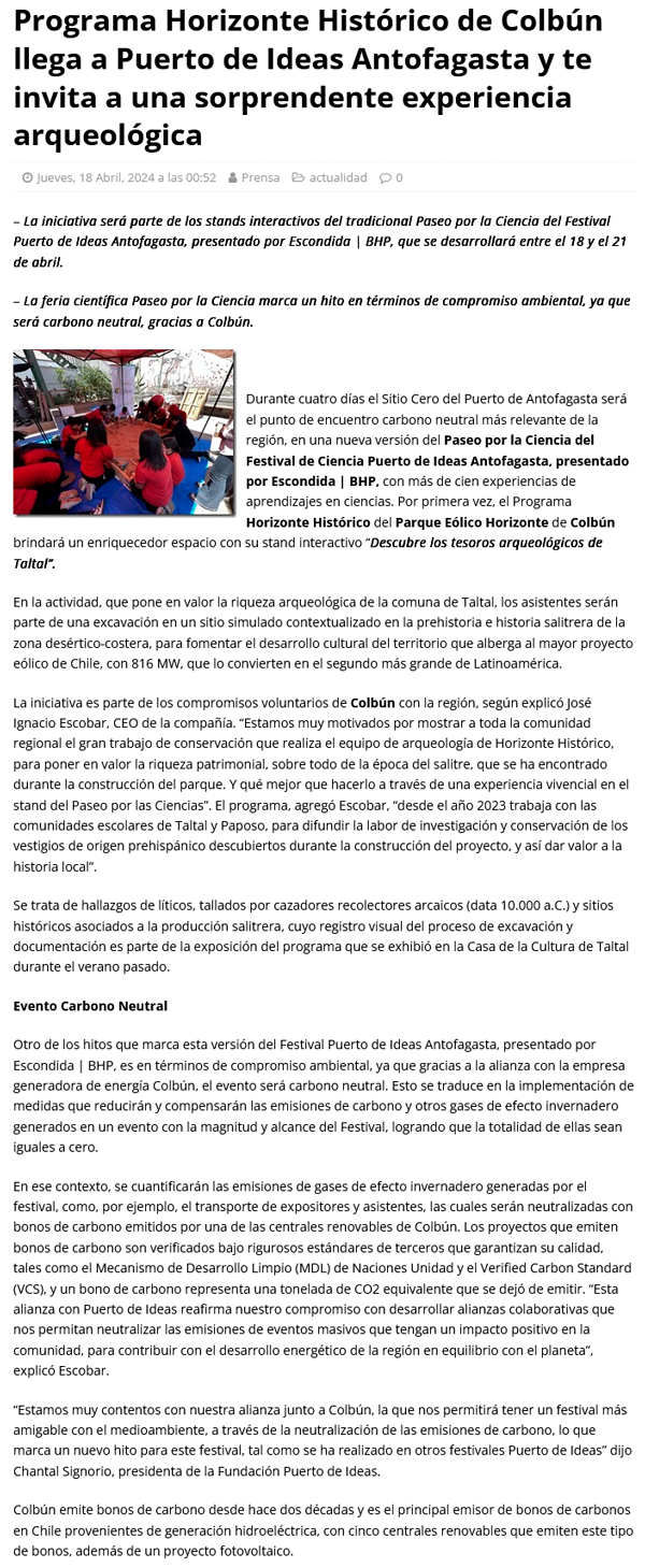 Experiencia arqueológica: Programa Horizonte Histórico de Colbún llega a Festival Puerto de Ideas Antofagasta - (revistaei.cl)