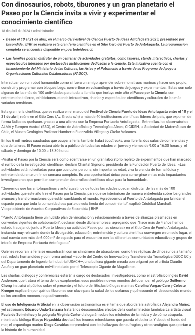Paseo por la Ciencia invita a experimentar y vivir el conocimiento científico en Antofagasta - (elreferente.cl)