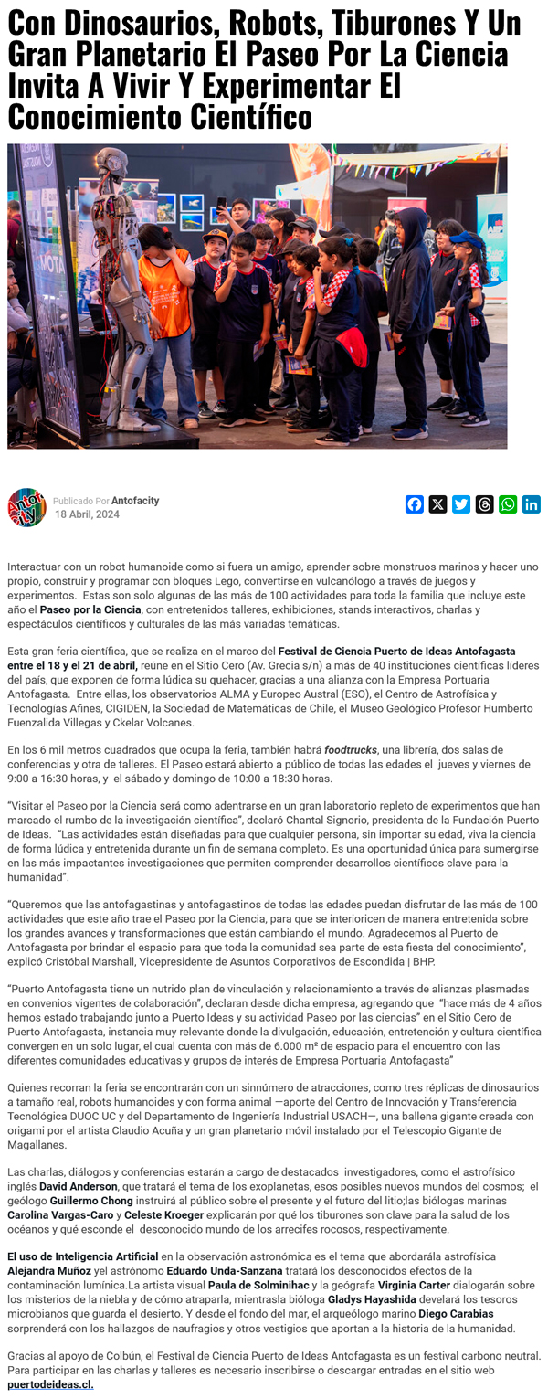 Paseo por la Ciencia invita a experimentar y vivir el conocimiento científico en Antofagasta - (elreferente.cl)