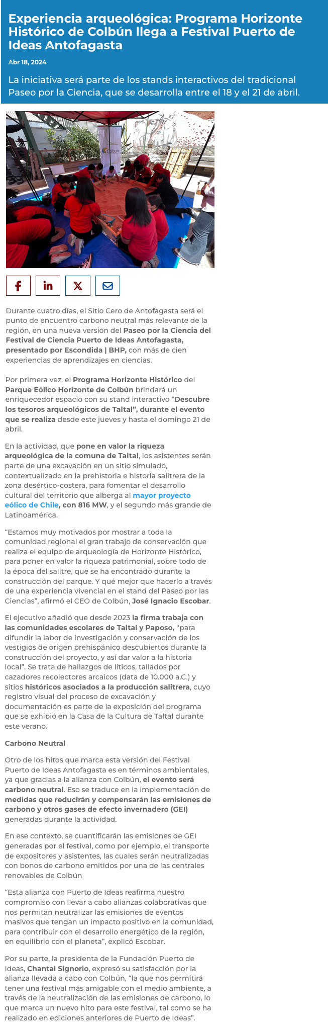 Programa Horizonte Histórico de Colbún llega a Puerto de Ideas Antofagasta y te invita a una sorprendente experiencia arqueológica - (regionesnoticias.cl)