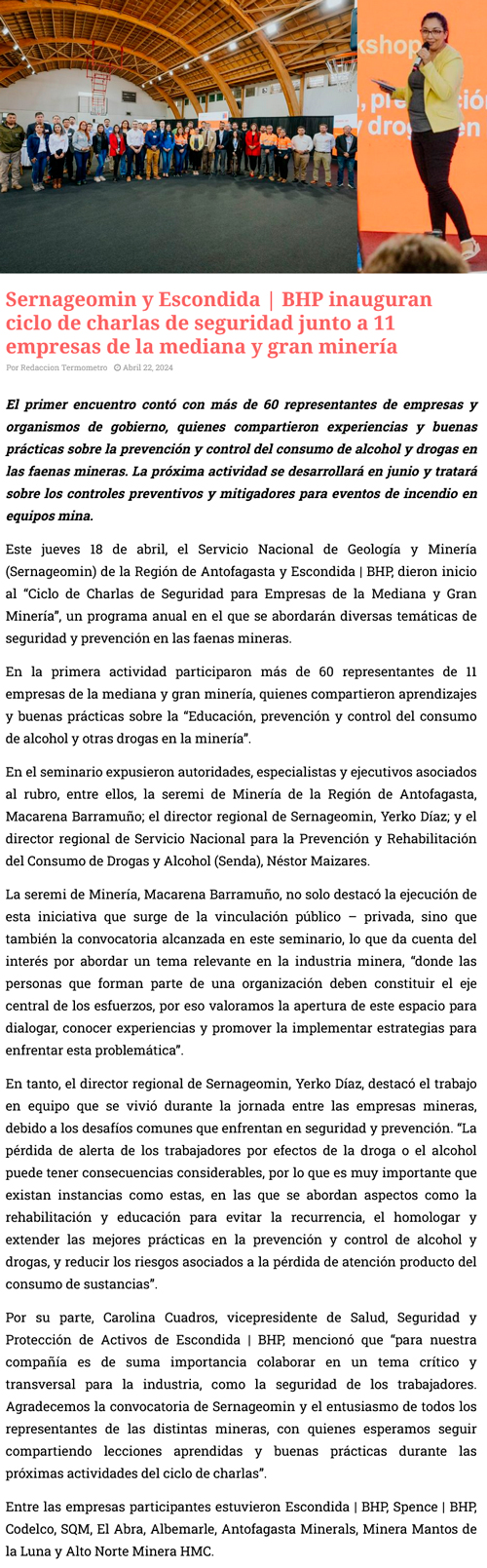 Sernageomin y Escondida | BHP inauguran ciclo de charlas de seguridad junto a 11 empresas de la mediana y gran minerĂa - (portalminero)