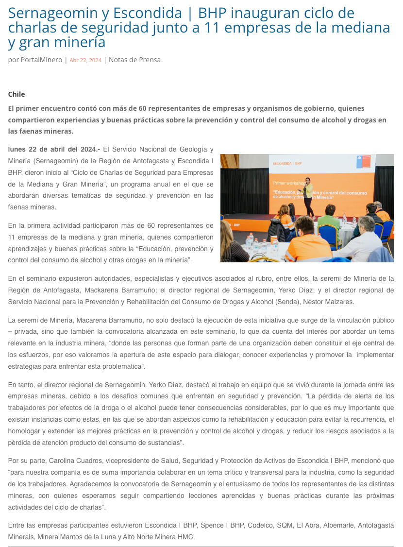 Sernageomin y Escondida | BHP inauguran ciclo de charlas de seguridad junto a 11 empresas de la mediana y gran minerĂa - (termometro.cl)