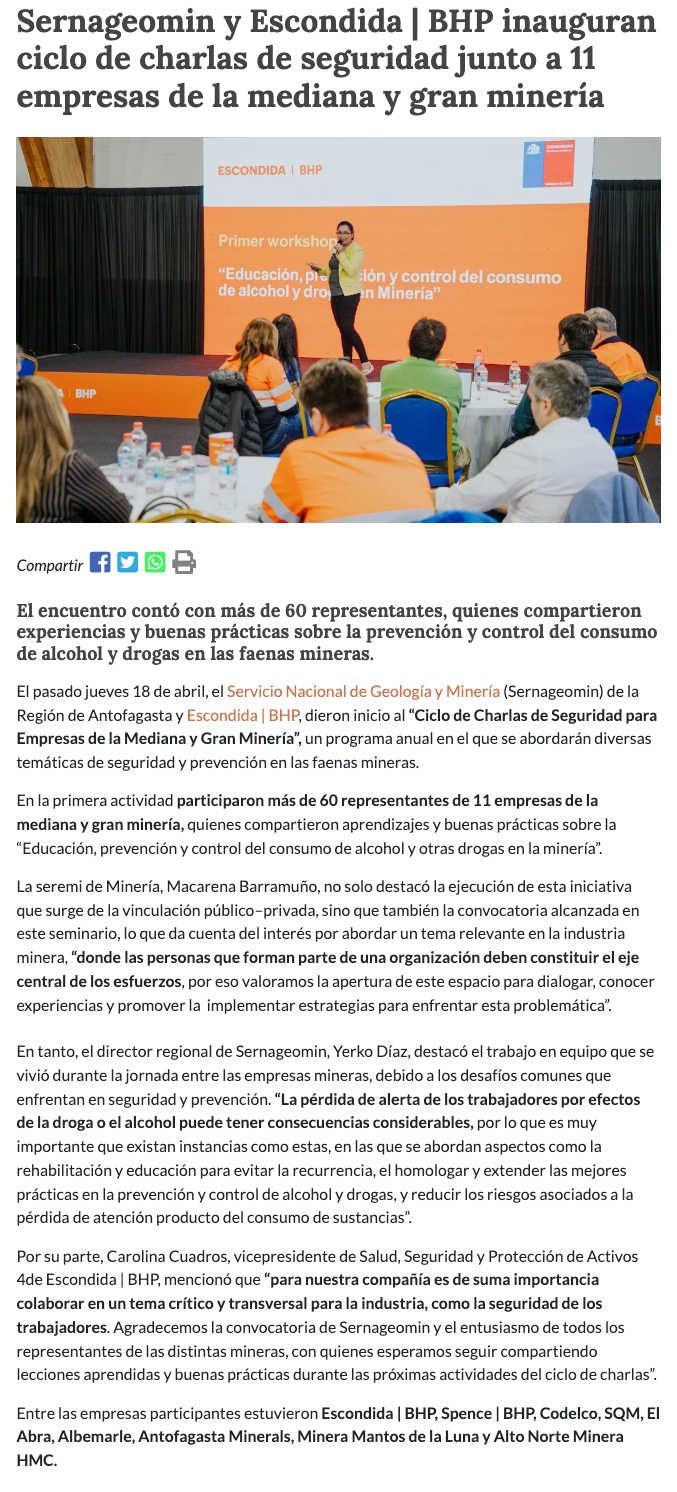 Sernageomin y Escondida | BHP inauguran ciclo de charlas de seguridad junto a 11 empresas de la mediana y gran minerĂa - (termometro.cl)