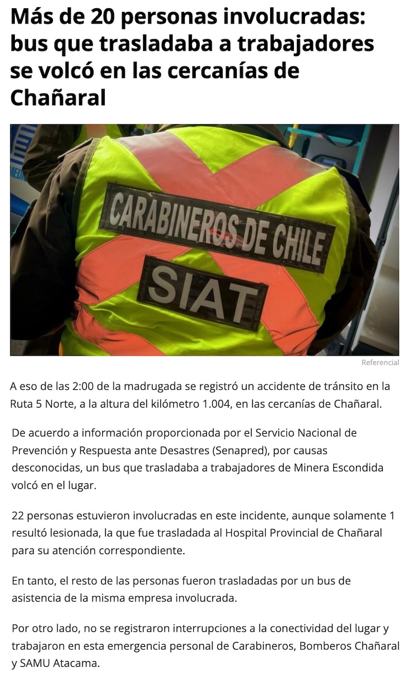 Bus que trasladaba a trabajadores se volcó en las cercanías de Chañaral - (elzorronortino.cl)