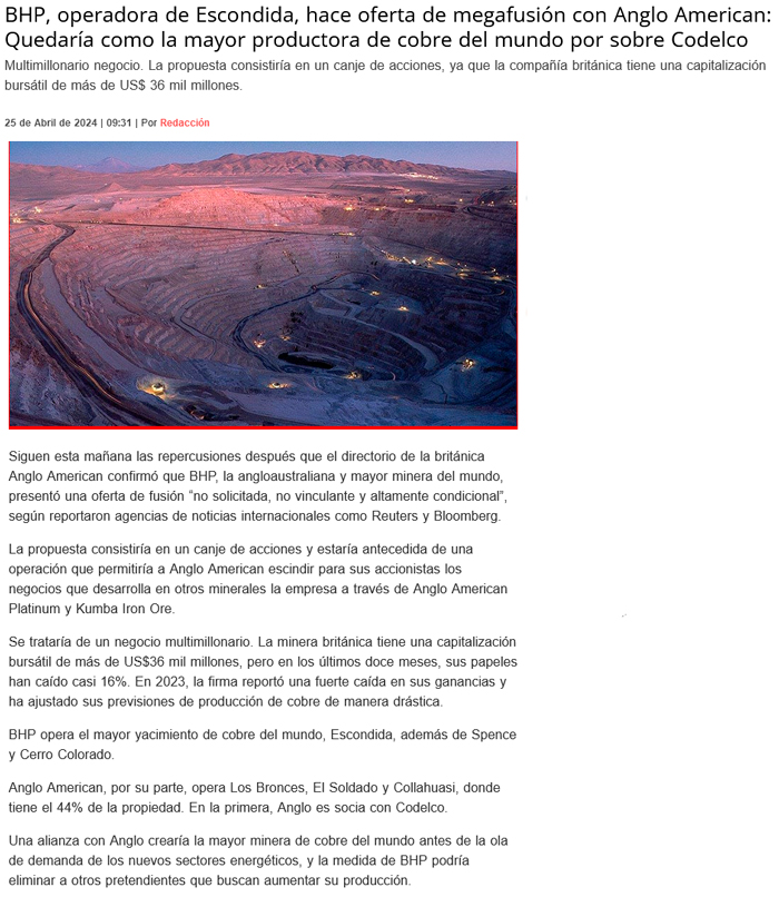 Oferta sorpresa: BHP sacude el mercado del cobre con una propuesta ‘no solicitada’ para adquirir Anglo American - (radiosol.cl)