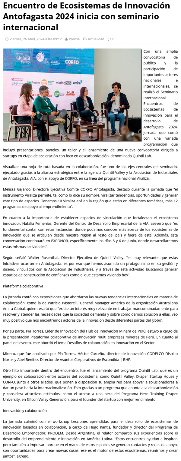 Encuentro de Ecosistemas de Innovación Antofagasta 2024 inicia con seminario internacional - (regionesnoticias.cl)