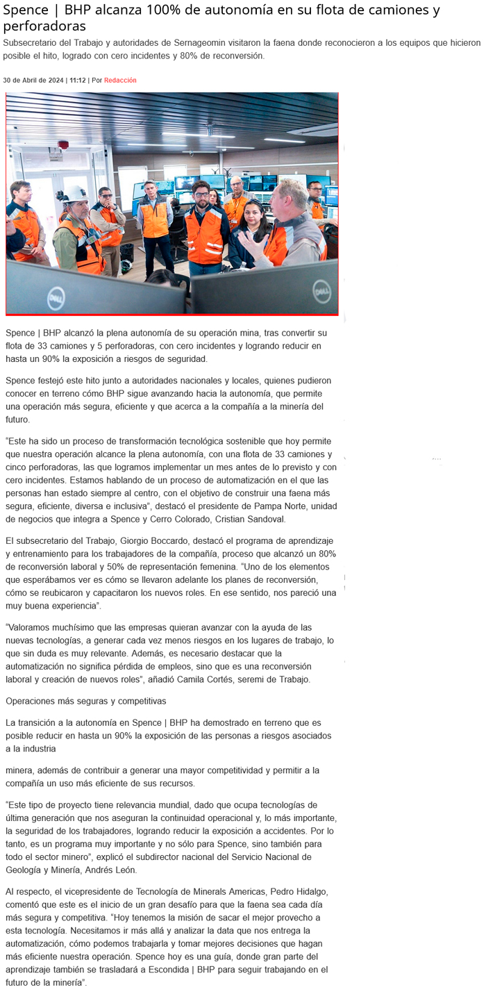 Spence | BHP alcanza 100% de autonomÃa en su flota de camiones - (fm7.cl)